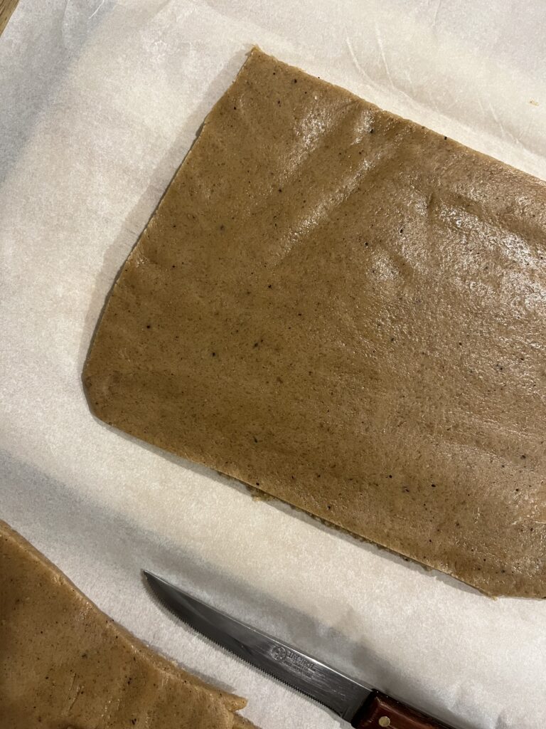 - Άνοιξε τη ζύμη σε 2-3 mm και κόψε μπισκότα